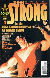 Tom Strong is a comic book created by writer Alan Moore and artist Chris Sprouse, initially published bi-monthly by America’s Best Comics, an imprint of DC Comics‘ Wildstorm division. Tom Strong, the title character, is a “science hero”, with a wife, Dhalua, and a daughter, Tesla, both with enhanced physical and mental abilities and longevity. He lives in a building called The Stronghold in Millennium City. He is also helped by Pneuman, a steam-powered robot, and King Solomon, a gorilla with human characteristics. His greatest foe is tuxedo-clad “science villain” Paul Saveen. The series explores many different timelines and universes, which are a nod to different comic genres. The primary characters are tributes to and spoofs of early pulp heroes.