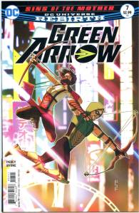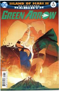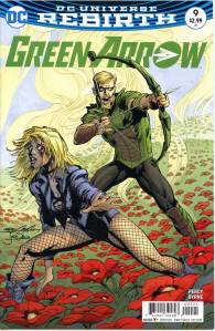 In 2016, DC relaunched its entire line of titles once again with the DC Rebirth event, this time intending to restore elements from the DC Universe prior to Flashpoint, while also maintaining the continuity of the New 52. Ben Percy remained the principal writer for the series, with a rotating art team consisting of Otto Schmidt, Juan Ferreyra and Stephen Byrne. During this run, Green Arrow is seemingly betrayed by Emiko as Percy reintroduces Shado, echoing elements from the Grell run, as well as John Diggle. In addition to restoring Green Arrow’s trademark Van Dyke beard, the series revisited a romance between Green Arrow and Black Canary for the first time since 2011. Percy also reestablished Green Arrow as a politically conscious figure, with the writer describing him as a “social justice warrior”. After it was revealed that Emiko was still on Oliver’s side, she eventually adopted the codename of Red Arrow.