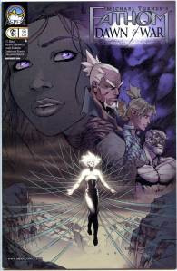 Fathom: Dawn of War bridges the gap between the original series and Fathom vol. 2. The story focuses on the Blue warrior Kiani, who is forced to side with the rebellious councilman Marqueses in order to save her master, Casque, from the clutches of human military scientists. Marqueses has engineered the situation in order to kidnap Casque and to secure the older warrior’s immense power for an offensive against the humans. Kiani tracks down Marqueses and saves Casque only to find he is part of the Black. The Black come for Casque, and he is forced to rejoin them, leaving Kiani angry and lost.