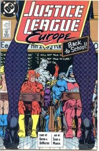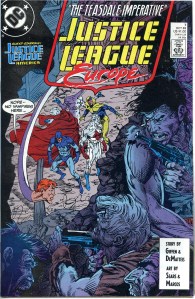 Justice League Europe was published for 68 issues (plus five annuals) from 1989 to 1994. Starting with issue #51 the title was renamed Justice League International (vol. 2). Like Justice League America, the series featured tongue-in-cheek humor but was a much more action-centric series than Justice League America. The action-themed nature of the series was most overt with the series’ most famous arc “The Extremists”. The arc featured the JLE fighting The Extremists, a cadre of psychopathic villains patterned after Marvel Comics villains Doctor Doom, Magneto, Doctor Octopus, Sabretooth and Dormammu.
