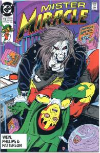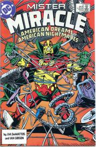 Mister Miracle was revived as part of the Justice League International lineup in 1987, a one-shot special by writer Mark Evanier and artist Steve Rude was published in 1987. This special was followed by an ongoing series that began in January 1989, written by J. M. DeMatteis and drawn by Ian Gibson. Other writers who contributed to the title include Keith Giffen, Len Wein, and Doug Moench. This run lasted 28 issues before cancellation in 1991. The series was largely humor-driven, per Giffen’s reimagining Scott Free, his wife Big Barda, and their friend Oberon, who pretended to be Scott’s uncle, as living in suburbia when they were not fighting evil with the Justice League.