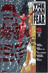 Frank Miller returned to the character and his origins with the 1993 five-issue Daredevil: The Man Without Fear miniseries. With artist John Romita, Jr., Miller expanded his retcon of the life and death of Murdock’s father, “Battling Jack” Murdock, and Murdock’s first encounters with the Kingpin and Foggy Nelson. The role of Stick in the genesis of Daredevil was expanded, as was Murdock’s doomed love affair with Elektra.
