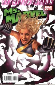 Ms. Marvel also plays a significant role in the 2008 storyline “Secret Invasion“, in which members of the shapeshifting alien race, the Skrulls, are revealed to have secretly infiltrated Earth by impersonating humans. She befriends Captain Marvel’s Skrull impostor and proves to him that she is not a Skrull by revealing intimate details about their life together. At the conclusion of the war with the Skrulls, Norman Osborn is placed in charge of the registered Avengers team. Refusing to serve under Osborn, Ms. Marvel flees Avengers Tower, and joins the New Avengers, becoming second-in-command. Osborn appoints former Thunderbolt member Moonstone (Karla Sofen) as the “new” Ms. Marvel to his Dark Avengers team; Moonstone wears a variation of Ms. Marvel’s original costume. Osborn engineers a battle that results in Danvers’s powers overloading, causing her apparent death. The character Moonstone takes over the title role in the ongoing Ms. Marvel series. Danvers returns with the aid of the New Avengers, a group of MODOK embryos (creations of the organization Advanced Idea Mechanics [AIM]), and a character known as the “Storyteller” and reclaims the title of Ms. Marvel from Karla Sofen.