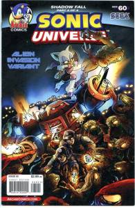 Sonic Universe was published by Archie Comics in association with Sega, based on the latter’s video game series of the same name. It is a spin-off of Archie’s Sonic comic book series, and shared continuity with that title. Sonic Universe centers on several characters featured throughout the franchise and comics, including Shadow the HedgehogBlaze the CatSilver the Hedgehog.