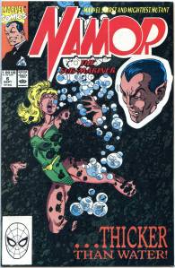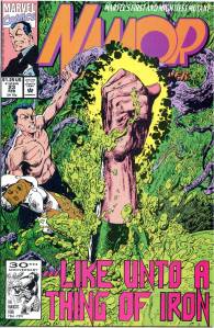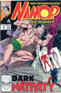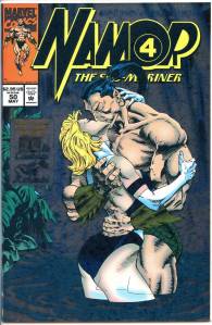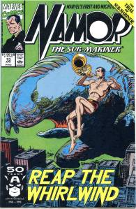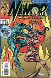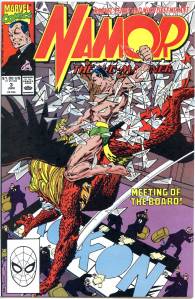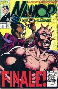 Namor again received an ongoing series in 1990. Namor, the Sub-Mariner, which ran 62 issues (April 1990 – May 1995), was initially written and penciled by John Byrne who took over the inking as well from issues #4–21. Unlike all of Namor’s previous series, the cover logo emphasized the character’s name rather than the “Sub-Mariner” epithet. From #26–38, the series’ penciler and eventual penciler-inker was then-newcomer Jae Lee, with Bob Harras scripting from #33–40. After three fill-in issues, the remainder of the series was written by Glenn Herdling and pencilled by Geof Isherwood. This series followed Namor as CEO of Oracle, Inc., a corporation devoted to reducing pollution, particularly in the oceans, and provided the stage for the return of the 1970s martial artist superhero Iron Fist, who had been presumed dead. Whereas J. M. DeMatteis saw his series as an opportunity to explore Namor much more deeply than he had been able to in the team book The Defenders, John Byrne felt that the character did not work well outside of a group context and accordingly gave Namor, the Sub-Mariner a massive supporting cast.