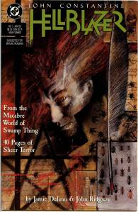 After favorable reader reaction to John Constantine‘s appearances in the comic book series Swamp Thing, where he had been introduced by Alan Moore during his authorship of the title, the character was given his own comic book series in 1988. The series was intended to bear the title Hellraiser, but this title was revised before publication due to the contemporaneous release of Clive Barker‘s unrelated film of the same name. Initial writer Jamie Delano was, in his own words, “fairly ambivalent” about the change of title.