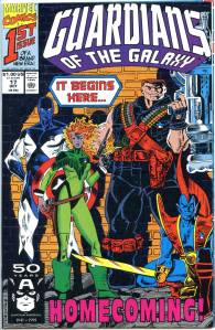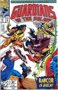 In the early 1990s, the Guardians starred in a self-titled comic that ran for 62 issues. This series was initially written and illustrated by Jim Valentino. With issue #29 (Oct. 1992) Michael Gallagher commenced writing the title, and continued until its cancellation with issue #62 (July 1995). A spin-off four-issue miniseries, Galactic Guardians (July–Oct. 1994), followed.