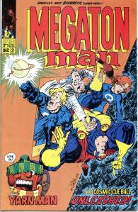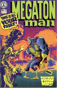 Megaton Man is a creator-owned comic book series published by Kitchen Sink Press beginning in 1984. Donald Simpson wrote and drew the series, in which the title character first appeared and starred. The original Megaton Man series ran for ten issues, but the character was later revived in a limited series, The Return of Megaton Man, and a series of one-shot issues spun off from the concept. In 1994, Simpson left Kitchen Sink to form his own company, Fiasco Comics, through which Simpson self-published his new title Bizarre Heroes, featuring Megaton Man (and many members of his old supporting cast) as part of a large ensemble cast.