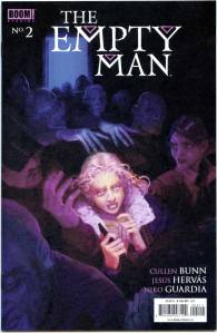 Cullen Bunn returns to the world of Empty Man with artist Jesús Hervás in this new ongoing series. The nation is in the grip of a terrible pandemic. The so-called Empty Man disease causes insanity and violence. Government quarantines are mandatory. One of the afflicted is Melissa Kerry, and the next step should be to quarantine her—but those who enter quarantine are never seen again. Melissa’s family won’t let that happen. All they have to do is care for her, keep her worsening condition a secret—and they’ll do anything, trust anyone, to keep her safe.