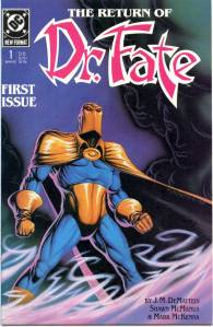 In 1988, DC Comics would release a Doctor Fate ongoing series focusing on 2 characters acting simultaneously as Doctor Fate, the first twenty-four issues written and drawn by J.M. DeMatteis and Shawn McManus. The series focused on magically aged up Eric and Linda acting as Doctor Fate under the guidance of Nabu, whom has inhabited and taken the identity of Kent Nelson. Despite their differences in personality and both Eric’s immaturity and true age, Linda is portrayed as having feelings for Erica which are mutual. The Eric Stauss character was seemingly killed off later in the run, making the Linda Strauss character the sole Doctor Fate for a time.