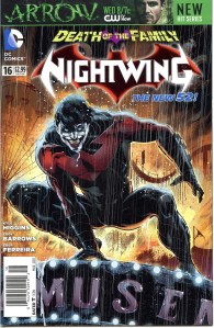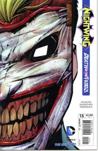 After the events of Flashpoint as part of The New 52, Nightwing was relaunched with issue #1. Grayson resumes the role of Nightwing following the return of Bruce Wayne. The new series, written by Kyle Higgins, opens with Grayson having returned to Gotham, when Haly’s Circus comes to town. Through a series of events, Grayson inherits the circus and is working through internal struggles with his past as he investigates the secrets the circus has brought about.