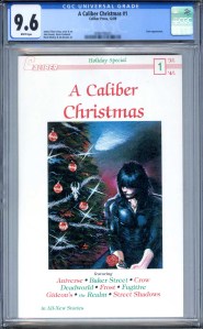 Cover by James O’Barr. Stories and art by Kyle Garrett, Jim Kesler, Gary Reed, Randy Zimmerman, Charles Marshall, Greg Cravens, Susan Van Camp, Kirk Jarvinen, Guy Davis, Mark Bloodworth, Kevin Van Hook, Vince Locke, Mark Winfrey, John Dennis, Ken Landgraf and James O’Barr. Christmas-themed stories featuring some of the popular Caliber series, including Deadworld, Baker Street, The Realm, The Aniverse, and even The Crow.