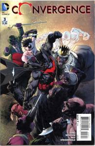 Convergence is a two-month weekly limited series, published by DC Comics, that ran from April 2015 to May 2015. Convergence spins out of the final issues of the weekly series, Earth 2: World’s End and The New 52: Futures End. The story involves Brainiac collecting cities and inhabitants from various timelines that have ended, trapping them in domes on a planet outside of time and space and opening them up to see what happens. Notable during this event is the return of DC characters and past timelines from before the 2011 “Flashpoint” storyline that led to the creation of The New 52 DC Universe.