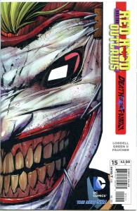 Red Hood and the Outlaws debuted in 2011 as part of The New 52 event, which rebooted DC Comics continuity, creating a fresh jumping-on point for new readers. Writer Scott Lobdell chose to dial back Jason’s recent villainy for the character’s first starring book, pairing him with the characters of Arsenal (Roy Harper), and Starfire, and retroactively establishing a long friendship between Jason and Roy. The title also retold Jason Todd’s history in a simplified form, and explored his complex relationship with his former mentor Batman and his brothers (and fellow Robins) Dick Grayson, Tim Drake, and Damian Wayne. The series also debuted a new costume for Red Hood, drawing from previous iterations, featuring his classic biker helmet look but a clear Bat insignia on his chest, placing the Red Hood more emphatically in Batman’s family of supporting characters.