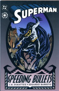Bruce decides to create a secret identity for himself many years later. As the Batman, he begins to brutally strike back at the criminals in Gotham. Meanwhile, criminal Lex Luthor is on the run and is caught in a horribly disfiguring accident. Lex becomes this dimension’s version of the clown prince of crime, The Joker.