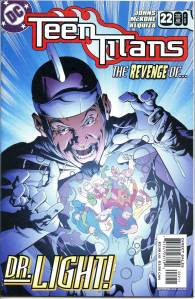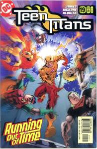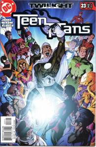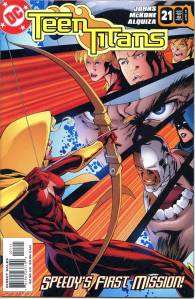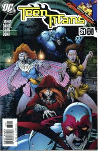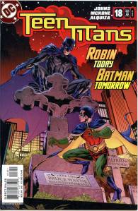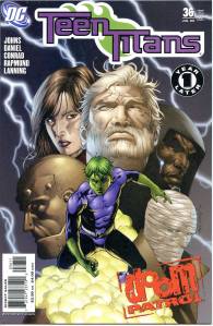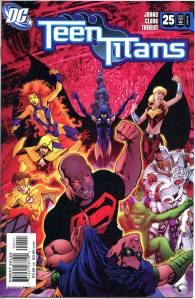 Writer Geoff Johns‘ Teen Titans series began in 2003, after a three issue mini-series entitled “Titans/Young Justice Graduation Day”, which saw the death of Donna Troy and Lilith, along with the disbanding of the 1998-2002 Titans roster and the Young Justice team. The relaunch came on the heels of the debut of the Teen Titans cartoon on Cartoon Network and reflected DC Comics chief executive Dan DiDio’s desire to rehabilitate the Titans as one of DC’s top franchise. Launched at the same time was a companion series, a revived version of “The Outsiders” which featured Nightwing and Arsenal, along with several other Titans members (Captain Marvel Jr. and Starfire).