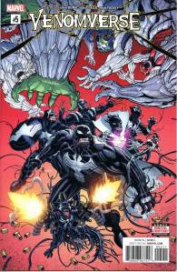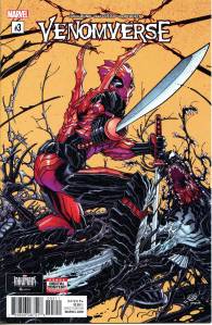The actual Venomverse arc was released after the conclusion of the Edge of… miniseries, it was written by Cullen Bunn and drawn by Iban Coello, who had already worked toguether in Deadpool & the Mercs for Money. The editor Devin Lewis described it as “the biggest Venom story of all time”, and it intended to make Venom an important character in the Marvel universe. Bunn pointed that most of the other main characters were selected because they would seem unexpected hosts of the symbiote. Lewis mentioned Deadpool in particular, and said that “Deadpool is one of our main venomized protagonists. He’s got so much heart and he’s also a source of unpredictability, insanity, and goofiness”. Bunn preferred instead his version of Rocket Raccoon.