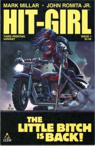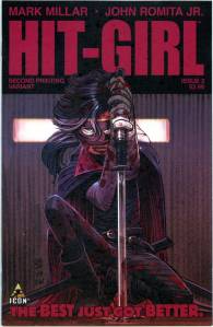 Hit-Girl spins off into her own blood-soaked series by the sales-busting creative team of Mark Millar and John Romita Jr. This story takes place between Kick-Ass Volumes 1 and 2 as Mindy McCready tries to settle into life as a regular school-girl, but wants nothing more than to be dispensing hot justice to the scum of New York City. Her mother and step-father think she’s doing her homework, but in reality she’s taken Kick-Ass on as her sidekick and is training him up to punch, shoot and stab … just like Daddy would have wanted.