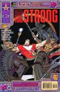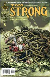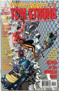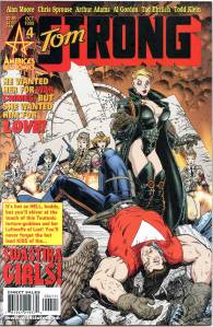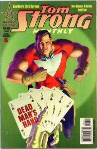 Tom Strong is a comic book created by writer Alan Moore and artist Chris Sprouse, initially published bi-monthly by America’s Best Comics, an imprint of DC Comics‘ Wildstorm division. Tom Strong, the title character, is a “science hero”, with a wife, Dhalua, and a daughter, Tesla, both with enhanced physical and mental abilities and longevity. He lives in a building called The Stronghold in Millennium City. He is also helped by Pneuman, a steam-powered robot, and King Solomon, a gorilla with human characteristics. His greatest foe is tuxedo-clad “science villain” Paul Saveen. The series explores many different timelines and universes, which are a nod to different comic genres. The primary characters are tributes to and spoofs of early pulp heroes.