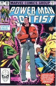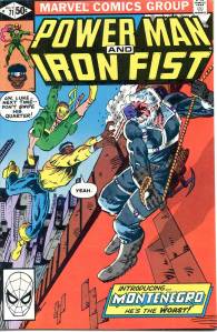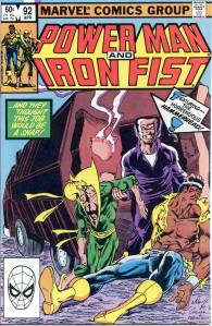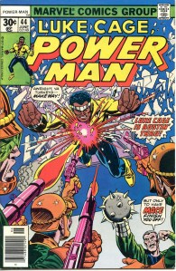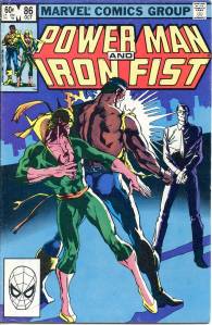 As the Blaxploitation genre’s popularity faded, Cage became unable to support his own series and was paired with another superhero whose popularity was based on a declining film genre, the martial arts hero Iron Fist, in an effort to save both characters from cancellation. Though the series title would remain Power Man in the indicia for a while longer, with issue #50 (April 1978) the cover title became Power Man and Iron Fist. It would remain thus until the series’s cancellation with issue #125 (September 1986). The series’s final writer, James Owsley, attempted to shed Cage’s Blaxploitation roots by giving him a larger vocabulary and reducing usage of his catchphrase, “Sweet Christmas!”.