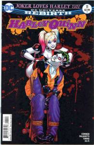 DC Comics began the next relaunch of its entire line of titles called DC Rebirth in June 2016. In December 2017, DC opted to rebrand its titles under the “DC Universe” name, using the continuity established from DC Rebirth. Within the DC Universe, Harley Quinn is featured in a third bi-monthly volume of her eponymous series, starting with Harley Quinn vol. 3 #1 (October 2016).