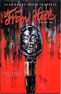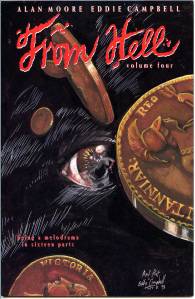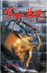 From Hell is a graphic novel by writer Alan Moore and artist Eddie Campbell, originally published in serial form from 1989 to 1996 and collected in 1999. Set during the Whitechapel murders of the late Victorian era, the novel speculates upon the identity and motives of Jack the Ripper. The novel depicts several true events of the murders, although portions have been fictionalised, particularly the identity of the killer and the precise nature and circumstances of the murders. The title is taken from the first words of the “From Hell” letter, which some authorities believe was an authentic message sent from the killer in 1888.