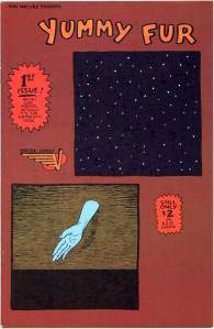 Yummy Fur started as a self-published minicomic which ran for seven issues, the contents of which were reprinted in the first three issues of the Vortex Comics series which started publication in December 1986. The series switched publishers to Drawn & Quarterly in 1991 until the end of its run in 1994, when Brown started on his Underwater series.