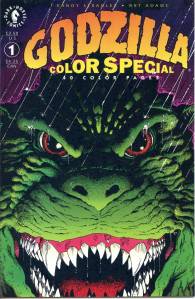 In 1992, an illustration of Godzilla (provided by Arthur Adams) was published in San Diego Comic Con Comics #1. Also that same year the one-shot issue Godzilla Color Special #1 was published. It would be reprinted as simply Dark Horse Classics: Godzilla #1 in 1998.