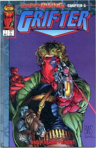 Grifter was an ongoing comic book series originally published by Image Comics. It featured the popular adventurer known as Grifter – a member of the super-hero team, the WildC.A.T.s, as well as the 70’s black ops outfit, Team-7. Grifter is the first member of the WildC.A.T.s to receive his own series. Oddly, the series began as part of a ten-chapter story-arc called “WildStorm Rising“, which swept through all of the published WildStorm titles of 1995 and was book-ended by the two-issue WildStorm Rising limited series.