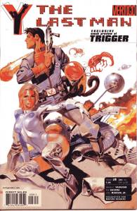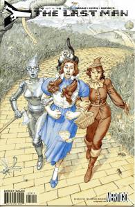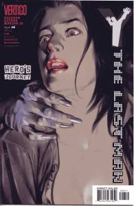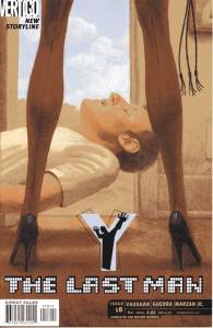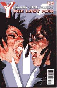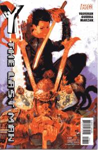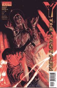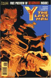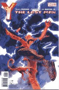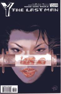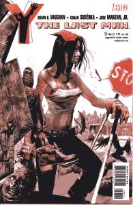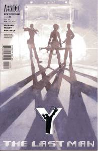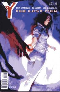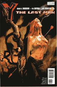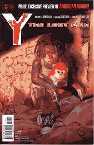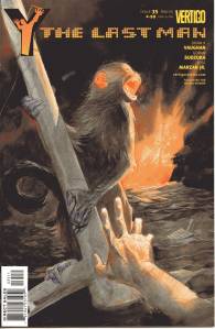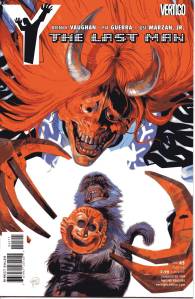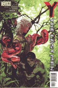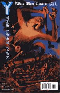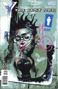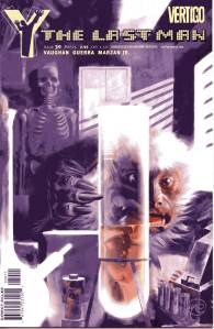 Y: The Last Man is a post-apocalyptic science fiction comic book series by Brian K. Vaughan and Pia Guerra published by Vertigo from 2002 through 2008. The series centers on Yorick Brown and his pet Capuchin monkey Ampersand, the only males who survived the apparent global androcide. The series was published in sixty issues by Vertigo and collected in a series of ten paperback volumes (and later a series of five hardcover “Deluxe” volumes). The series’ covers were primarily by J. G. Jones and Massimo Carnevale. The series received three Eisner Awards.