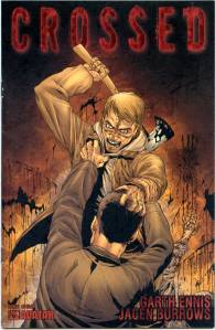 The story follows survivors dealing with a pandemic that causes its victims to carry out their most evil thoughts. Carriers of the virus are generally known as the “Crossed” due to a large, cross-like rash that appears on their faces – other names include “cross-faces” and “plus-faces”. This contagion is primarily spread through bodily fluids, which the Crossed have used to great effect by treating their weapons with their fluids, as well as through other forms of direct fluidic contact such as rape and bites, assuming the victim lives long enough to turn. A major difference between the Crossed and other fictional zombie or insanity-virus epidemics (e.g., in the film 28 Days Later) is that while the Crossed are turned into homicidal violent psychopaths, they still retain a basic human-level of intelligence: thus, they are still capable of using tools and weapons, driving motor vehicles, setting complex traps, and other actions. It is occasionally noted in the series that a Crossed retains any skills they had prior to their infection; most simply lack the patience or sanity to do anything not immediately related to their vicious impulses.