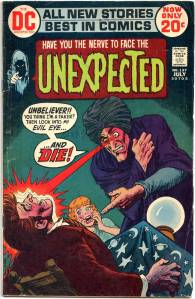 In 1979, The Unexpected converted to the Dollar Comics format and incorporated House of Secrets and The Witching Hour. Each “Unexpected” story would always include the word in its last panel. After the merge, this was only true of the Unexpected section; there would then be complete, ad-free issues of The Witching Hour, hosted by its witches, and The House of Secrets, hosted by Abel. The Witching Hour feature was alternated with Doorway to Nightmare starring Madame Xanadu, which appeared in issues #190, 192, 194, and 195.
