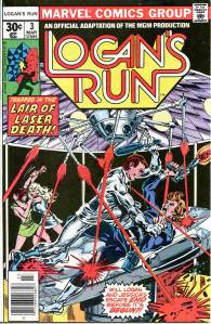Marvel Comics published Logan’s Run in 1977, with George Pérez drawing five issues between January and May 1977, with “acceptable” sales. The comics adapted the film’s story in five issues and briefly continued beyond. In his art, Pérez sought to follow the art direction of the film. The book was cancelled after issue #7 in July 1977.