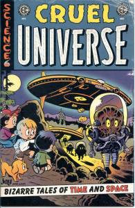 The unpredictable return of EC Comics continues here with the quantum comics event of the millennium! Galaxies will collapse. Space-time will be distorted. And your very will to exist, too, shall be broken. . . . Just remember: It’s all in the name of SCIENCE!