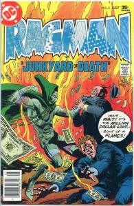 A Vietnam veteran, Rory had grown up helping his father, a junk man who owned a pawn shop named Rags’n’Tatters. His father always dreamed of making a better life for Rory and constantly promised that someday he would make Rory rich. While drinking with his friends one night, his father discovered 2 million dollars stuffed inside an old mattress that had been pawned just recently. He and his friends decided to hide the money for Rory, since they were too old to truly benefit from it. The money turned out to be the loot from an armored car heist and when the hoods came to the shop one night to get it, they shot down some electrical wires and used them to torture Rory’s father and his friends into revealing where the money was hidden. Rory arrived soon after and seeing his father in agony attempted to pull him free from the wires. A final shock of power ran though the old men and grounded out at Rory, knocking him unconscious. When he woke his father and friends were dead and the hoods responsible were gone. Using a costume made out of old rags (his father had bought it from a stranger before he died and left a note saying Rory could wear it to a costume party) he became Ragman, “The Tatterdemalion of Justice”.
