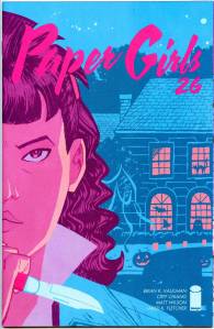 Paper Girls follows the story of four 12-year-old newspaper delivery girls (Erin, MacKenzie, KJ, and Tiffany) set in Stony Stream, a fictional suburb of Cleveland, Ohio. While out delivering papers on the morning after Halloween, the town is struck by an invasion from a mysterious force from the future. The girls become unwillingly caught up in the conflict between two warring factions of time-travelers.