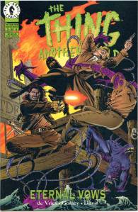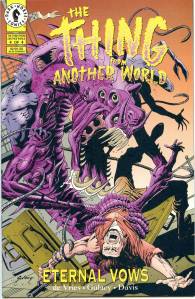 Written by David DeVries, pencils by Paul Gulacy. An American fisherman is infected by a piece of the Thing left over at the end of the first story, and subsequently infects his New Zealander girlfriend, though this time the Things intend to quietly survive together rather than assimilating everything in sight. MacReady shows up once again to put an end to that plan.