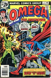 Omega the Unknown was published by Marvel Comics from 1976 to 1977, featuring the eponymous fictional character. The series, written by Steve Gerber and Mary Skrenes and illustrated by Jim Mooney, ran for 10 issues before cancellation for low sales. Despite its short run, it has remained as a cult classic due to its intriguing characters and unusual storytelling. A 10-issue series revamping the character was published from 2007 to 2008, written by novelist Jonathan Lethem and illustrated by Farel Dalrymple.
