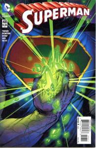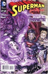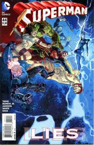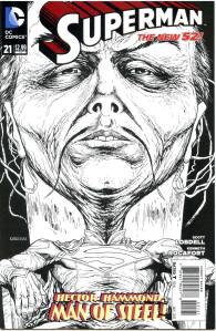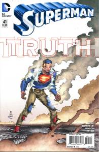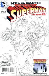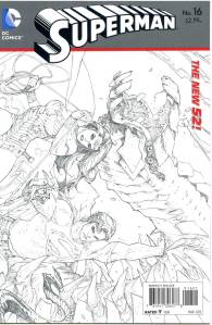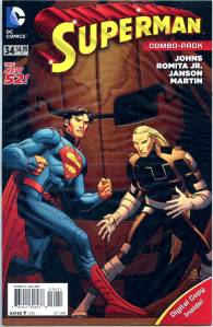 In late July 2011, DC released The New 52, a free preview book giving solicitations and previews of all of the new titles launching from August 31, 2011. Notable continuity changes shown included Superman‘s two new looks: one which consists of jeans, a blue T-shirt with the “S” logo and a cape, the other consisting of Kryptonian battle armor that resembles his classic costume.