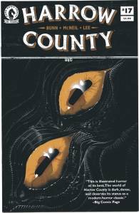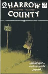 Harrow County began as a serialized prose story called Countless Haints, written by Cullen Bunn and released on his website. Countless Haints ran for ten chapters before it was retired. Later the story was repurposed as an ongoing comic with artist and co-creator Tyler Crook. The main character Madrigal was renamed Emmy, the time period was shifted from present day to the 1930s, and the location was changed from Ahmen’s Landing to Harrow County.