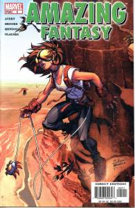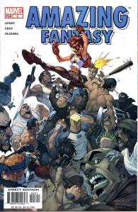 The second volume of Amazing Fantasy ran 20 issues (cover-dated Aug. 2004 – June 2006). The first arc ran through vol. 2, #1–6 and featured a new teenaged heroine, Araña. The second arc, in vol. 2, #7–12, published after a short hiatus, featured a revamped, female version of the supervillain the Scorpion. A back-up feature in vol. 2, #10–12 (Sept.-Nov. 2005) starred the character Nina Price, Vampire by Night. Vol. 2, #13–14 (both Dec. 2005) led with the modern-West feature “Vegas”, backed up by “Captain Universe“