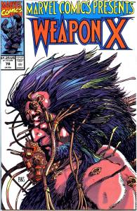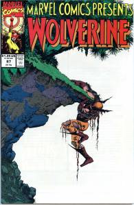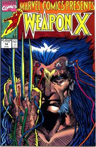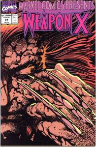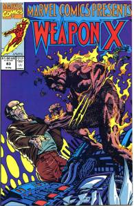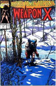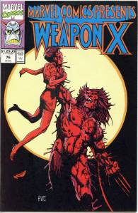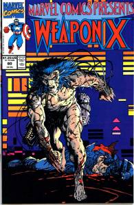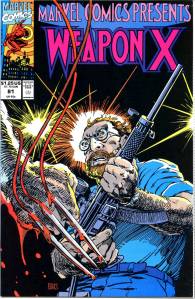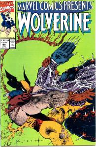 Marvel Comics Presentswas published from 1988 to 1995. The original plan was for the lead story to feature different members of the X-Men in solo adventures lasting between eight and ten episodes. The first ten issues featured Wolverine; others featured were Colossus, Cyclops, Havok, and Excalibur. From issue 39 onwards,Wolverine was featured as the lead story in all issues. Particularly notable was “Weapon X” in issues #72-84, which revealed Wolverine’s origin, with story and art by Barry Windsor-Smith.