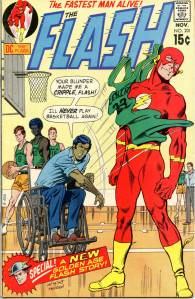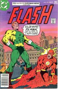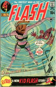 This new Flash was Barry Allen, a police scientist who gained super-speed when bathed by chemicals after a shelf of them was struck by lightning. He adopted the name The Flash after reading a comic book featuring the Golden Age Flash. After several more appearances in Showcase, Allen’s character was given his own title, The Flash, the first issue of which was #105 (resuming where Flash Comics had left off).