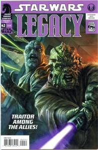 Star Wars: Legacy is set over 126 years after the film Return of the Jedi. The comics feature Cade Skywalker, a descendant of Luke Skywalker, who was trained as a Jedi, but abandoned the order. He apprenticed himself to the pirate Rav and lives among bounty hunters, smugglers and pirates. Cade also dropped his last name. The series begins with an attack on the Jedi Temple and the overthrow of the Galactic Alliance by the One Sith order.