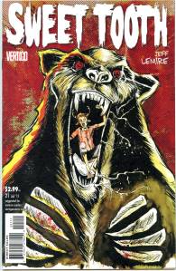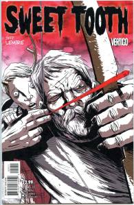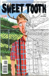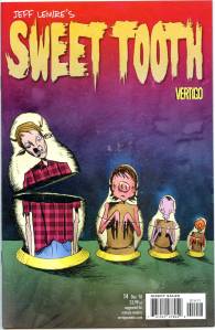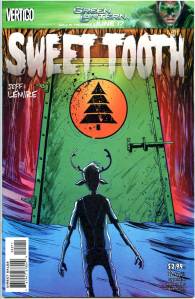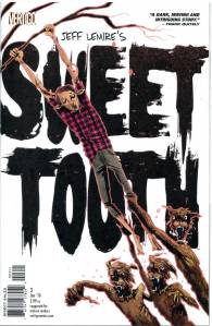 Sweet Tooth is a limited series written and drawn by Canadian Jeff Lemire and published by DC Comics‘ Vertigo imprint. Dubbed by some as “Mad Max meets Bambi”, it takes place in a mostly rural post-apocalyptic setting where some creatures are human/animal hybrids.