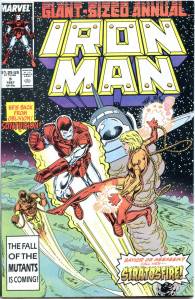 Tony Stark’s health deteriorates, and he discovers the armor’s cybernetic interface is causing irreversible damage to his nervous system. His condition is aggravated by a failed attempt on his life by Kathy Dare, a mentally unbalanced former lover, which injures his spine, paralyzing him.[68] Stark has a nerve chip implanted into his spine to regain his mobility.[69] Stark’s nervous system continues its slide towards failure, and he constructs a “skin” made up of artificial nerve circuitry to assist it. Stark begins to pilot a remote-controlled Iron Man armor, but when faced with the Masters of Silence, the telepresence suit proves inadequate. Stark designs a more heavily armed version of the suit to wear, the “Variable Threat Response Battle Suit”, which becomes known as the War Machine armor. Ultimately, the damage to his nervous system becomes too extensive.