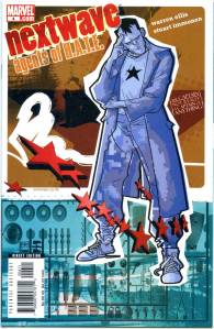 Nextwave is a humorous comic book series by Warren Ellis and Stuart Immonen, published by Marvel Comics between 2006 and 2007. Nextwave consistently features extreme violence and comedy, and simultaneously satirizes and celebrates Marvel’s superhero comics. The series frequently uses flashback scenes in which existing Marvel characters such as Captain America, Ulysses Bloodstone and the Celestials act grossly out of character for comedic purposes. In an interview, Ellis said, “I took The Authority and I stripped out all the plots, logic, character and sanity.” “It’s an absolute distillation of the superhero genre. No plot lines, characters, emotions, nothing whatsoever. It’s people posing in the street for no good reason. It is people getting kicked, and then exploding. It is a pure comic book, and I will fight anyone who says otherwise. And afterwards, they will explode.”