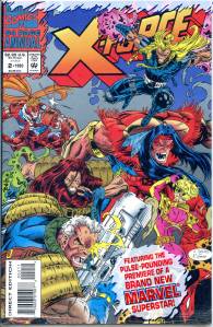 X-Force was created by illustrator Rob Liefeld after he started penciling The New Mutants comic book in 1989 with #86. The popularity of Liefeld’s art led to him taking over the plotting duties on the book. With help from writer Fabian Nicieza, who provided the dialogue for Liefeld’s plots, Liefeld transformed the New Mutants into X-Force in New Mutants #100, the book’s final issue. Liefeld and Nicieza launched X-Force in August 1991. Rob Liefeld obtained the name for the series from an unknown artist at a convention a few months prior to its release. With the aid of a multiple-variant poly-bagged card, the book sold a record 5 million copies, and remains the second highest selling American comic book of all time, surpassed only by Jim Lee’s X-Men book that same summer with 8 million copies. The original line-up of the team included Boom Boom, Cable, Cannonball, Domino, Feral, Shatterstar and Warpath. In later issues, X-Force’s roster would include Siryn, Rictor and Sunspot.