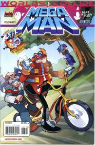 Mega Man is a comic series based on the video game series of the same name by Capcom produced by Archie Comics which was announced at New York Comic Con 2010. The series began publication in April 2011 with Ian Flynn, who has written many stories for Archie’s Sonic the Hedgehog series, involved with the production. The series has proved highly successful, and in 2013 a crossover took place between the Mega Man and Sonic series, under the title “Worlds Collide“. The series does not follow the events of the games in exact order, including an adaptation of the Japanese exclusive game Super Adventure Rockman between those of Mega Man 2 and Mega Man 3. The series later included a few stories set in the time of the Mega Man X series. The popularity of Worlds Collide subsequently led to a second crossover with the Sonic series, Worlds Unite. The series was put into an “indefinite hiatus” after issue 55, concluding with setup for an adaptation of Mega Man 4.