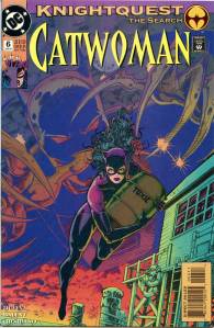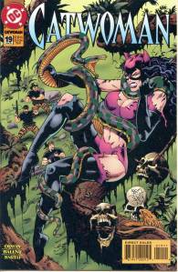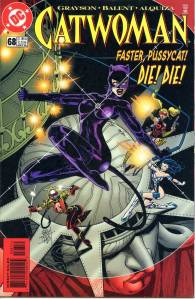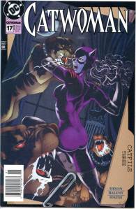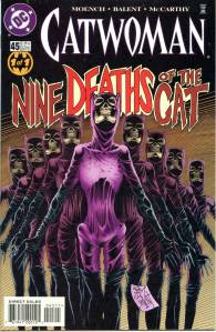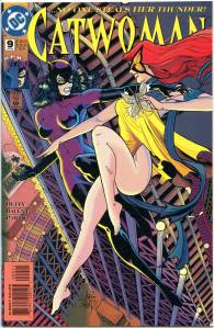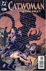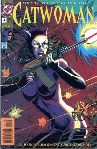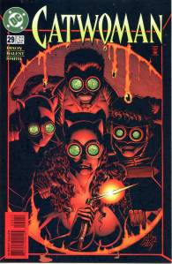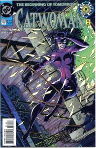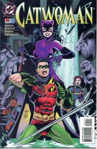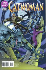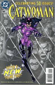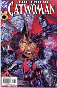 Selina then returns to Gotham City, which at this time is in the midst of the No Man’s Land storyline. As Catwoman, she assists Batman against Lex Luthor in the reconstruction of the city. After being arrested by Commissioner Gordon, she escapes from prison. Later that year, during the “Officer Down” storyline in the Batman titles, Catwoman is initially the chief suspect. Although later cleared, she displays increasingly erratic behavior throughout the story. Soon afterward, she disappears and is believed to have been killed by the assassin Deathstroke the Terminator, ending her series at issue #94.